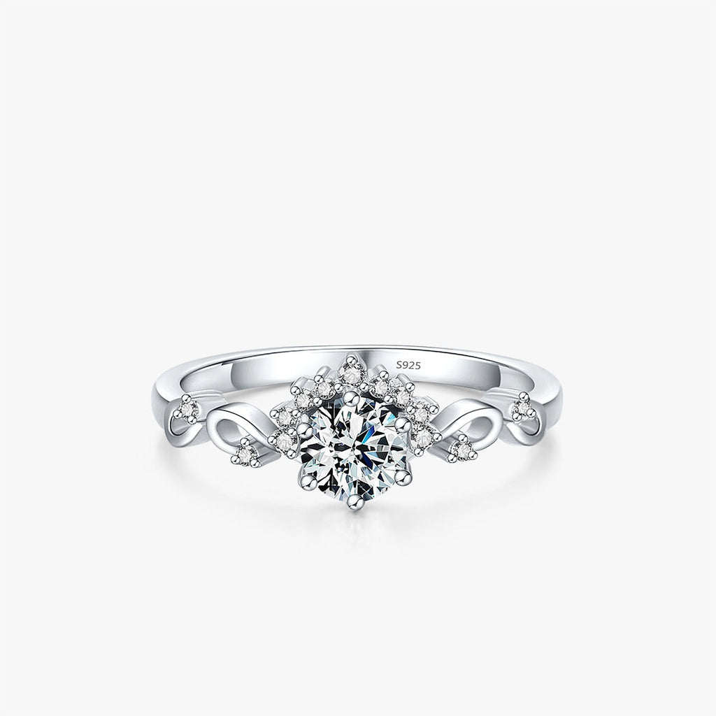 Snowflake Whisper RingDelicate as a snowflake, this sterling silver ring features a dazzling central stone surrounded by a graceful halo and intricate side details. A timeless piece that whispers elegance with every movement.INZATT Timeless Sparkle.